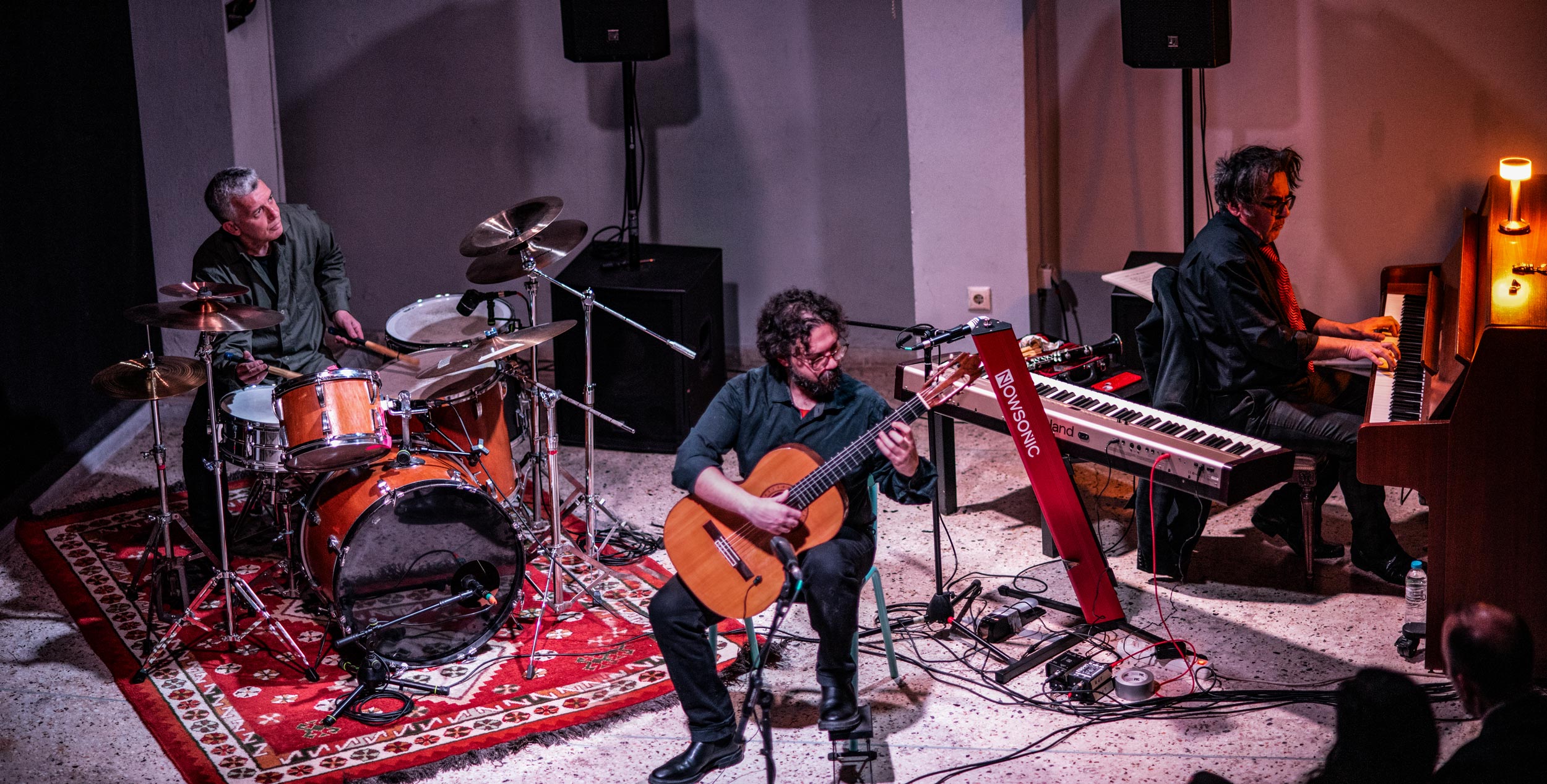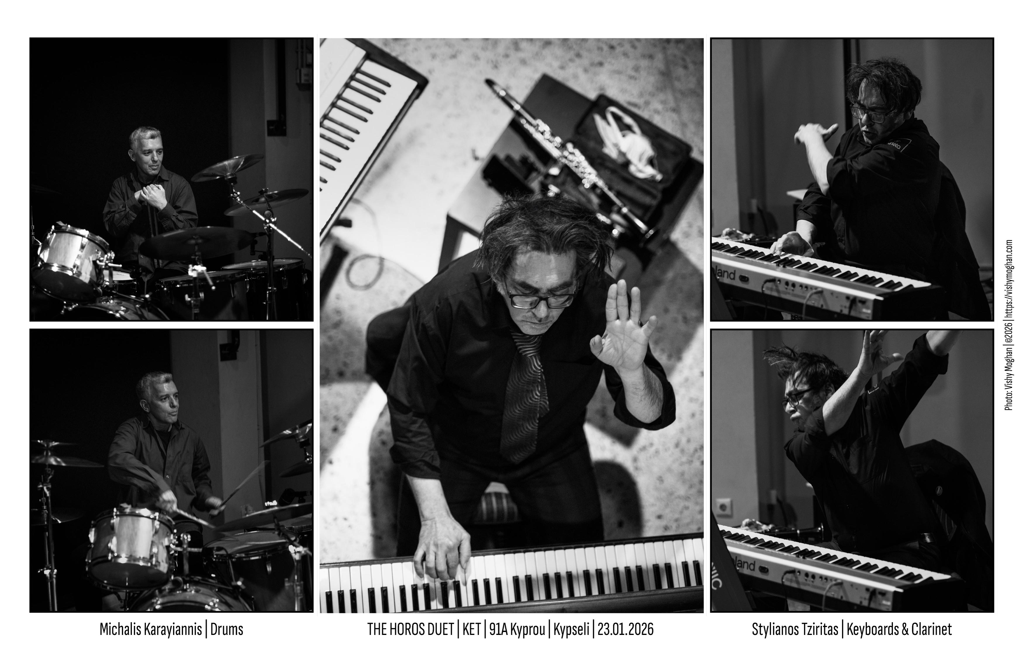 My long time friend and fellow band member, in Bad Mathematics, Michalis Karayiannis on drums and the amazing Stylianos Tziritas on piano, keyboards, clarinet and miscellaneous instruments, in performance at KET in Kypseli, Athens on the 23rd of January. Their show opened with guitarist Themis Vassiliou.